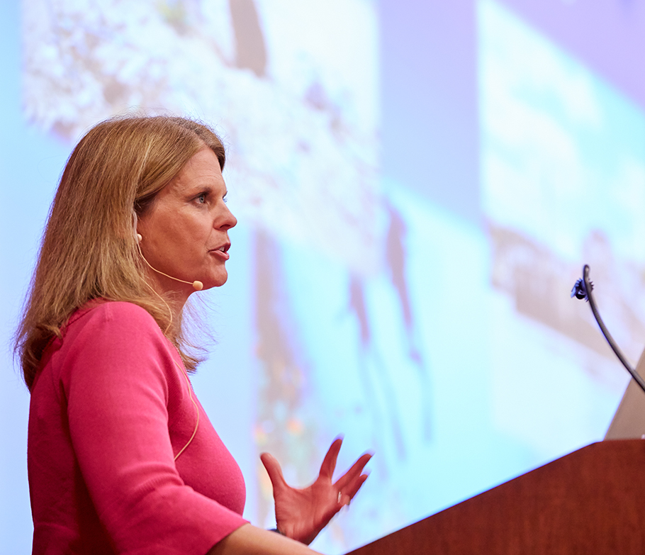 Kara Lavender Law, who gave the 2019 Clifford Symposium keynote address, is a research professor of oceanography at the Sea Education Association in Woods Hole, Massachusetts. She spoke to an audience in Wilson Hall on September 19.