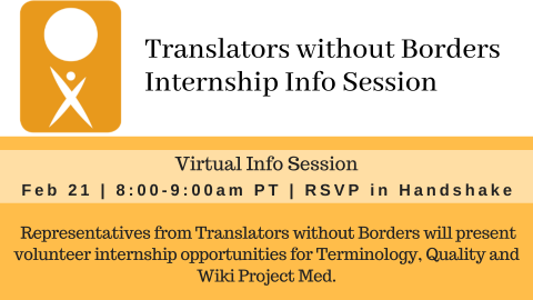 Representatives from Translators without Borders will present volunteer internship opportunities for Terminology, Quality and Wiki Project Med.