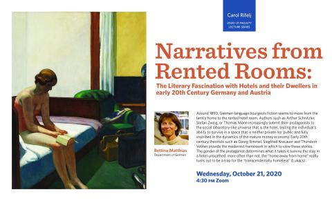 Bettina Matthias, Department of German, will give a talk as part of the 2020-21 Carol Rifelj Faculty Lecture Series.