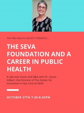 Join the Pre-Health society in hosting Dr. SuzanneGilbert,a leading expert and respected innovator in the field of international blindness prevention and sight restoration. A public health specialist with over 30 years of experience, Dr.Gilberthas spent her career co-designing and implementing eye care service delivery systems for some of the world’s poorest communities in Asia, Africa, and Latin America. Dr.Gilbertis a co-founder of the Seva Foundation and currently serves as its Director of The Center for Innovation in Eye Care. The Center promotes new ways to address emerging issues in community eye care and works to develop sustainable eye care services based in locally owned and operated institutions across the globe.