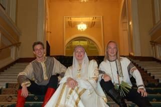 The very popular Russian folk troupe Zolotoi ples returns to campus for a concert of lively vocal and instrumental music sponsored by the Russian Department and the Academic Enrichment fund. Sergei Gratchev, Elena Sadina and Alexander Solovov (L to R) are graduates of the Saratov Music Academy in Russia and frequently direct the Middlebury Russian School choir.