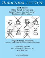 Jeff Byers as the Philip Battell Stewart and Sarah Frances Cowles Stewart Professor of Chemistry, will be lecturing on “High Energy Radicals.” His lecture will be appropriate for a non-technical audience.