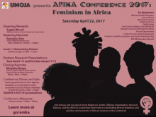 Join UMOJA, the African cultural organization on campus, for its annual AMKA Conference! This year we will be exploring the theme of feminism in Africa. This year’s conference will feature keynote speeches by professionals in the field, lunch, student speakers, and plenty of opportunity for discussion and networking.