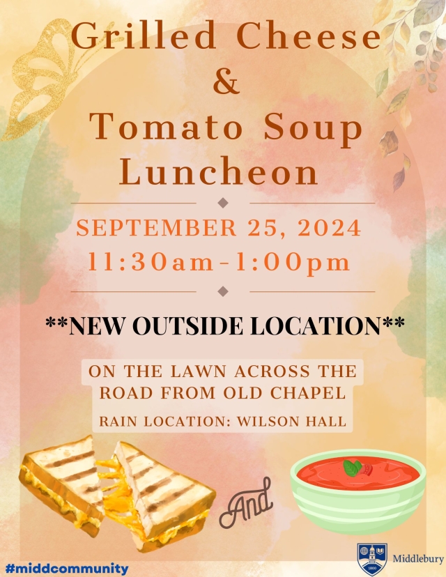 Join us for a grilled cheese sandwich party rescheduled to 9/15 due to weather