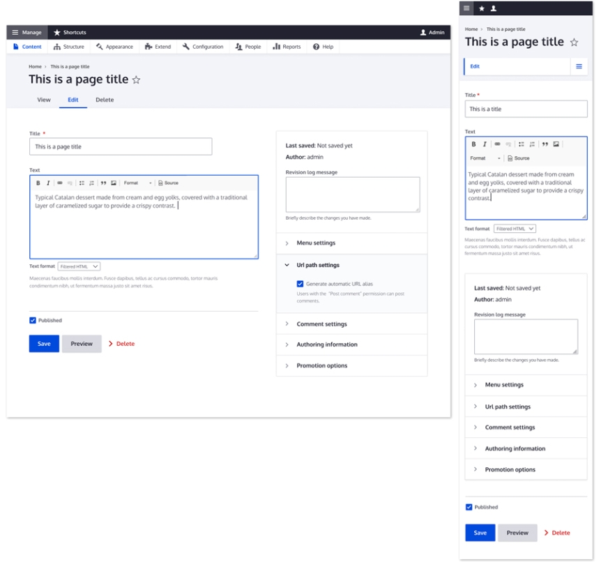 We have updated all Drupal 9 sites to use the Claro theme for editing and other administrative tasks. Claro is the new default administrative theme for the Drupal project and includes significant design usability and accessibility improvements. There are very few functional changes with this theme. If a button or field was in one place on the old theme, it will be in the same place in Claro, but it should be easier to see, click, and use.
