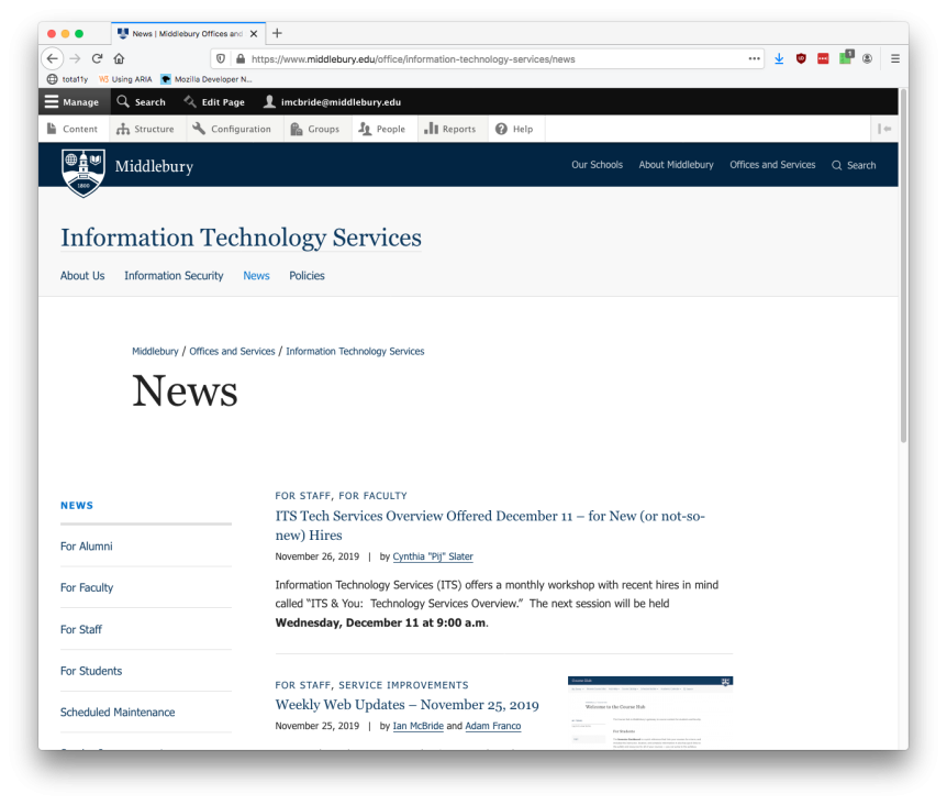 We have added news and blogging functionality to the Offices and Services site. When the ITS site relaunches on that platform shortly we’ll be moving our news over there.