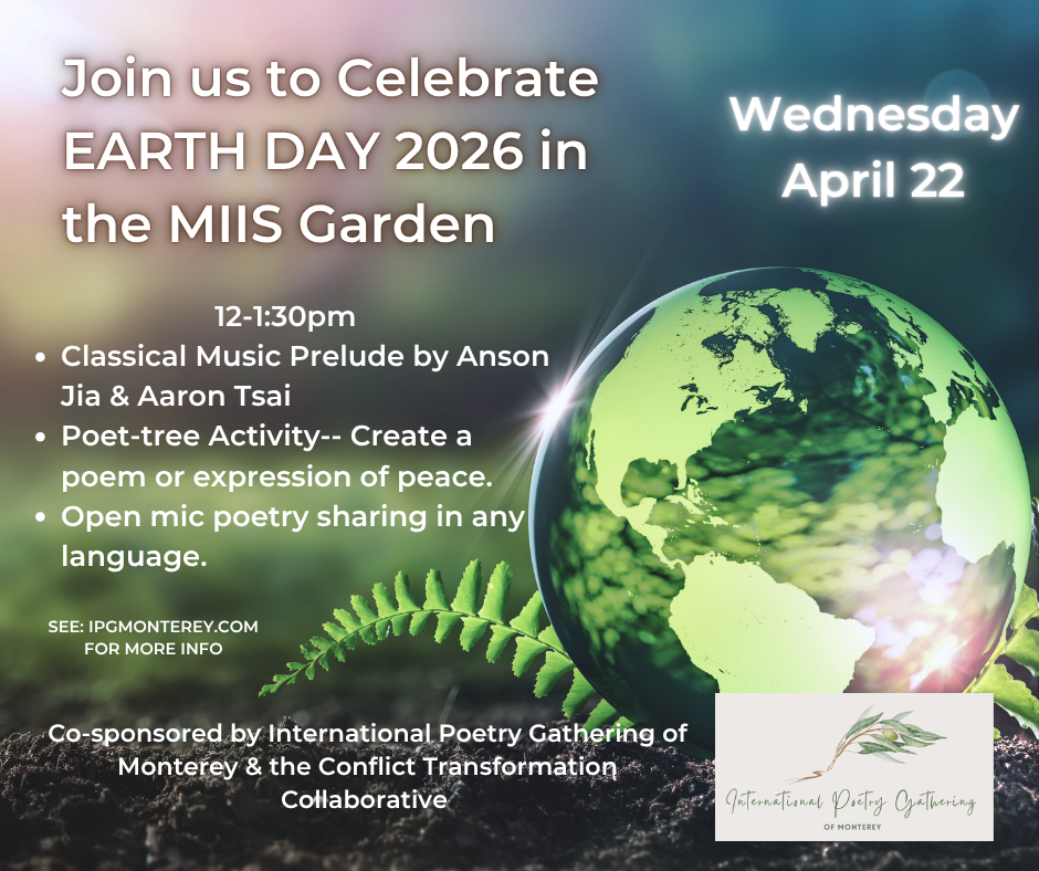 Join us in the garden for poetry, music, and inspiration during the lunch hour to celebrate Earth Day during Poetry Week 2026.