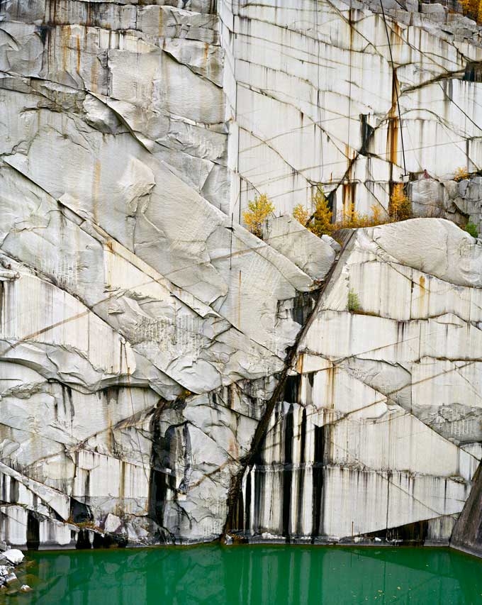 Burtynsky’s now signature pursuit of conceptual subjects—from oil extraction in the United States and in Azerbaijan to shipbreaking in Bangladesh—started in 1991 in the granite quarries of Barre, Vermont. One hundred years before Burtynsky encountered Vermont’s quarries, stoneworkers emigrated here primarily from the ancient quarrying town of Carrara, Italy, as artists and artisans to contribute their expertise to an industry in the throes of expansion. They brought along with them a love for opera, political activism, and strong values that made their assimilation into American society relatively easy. Nature Transformed considers a selection of Burtynsky’s monumental photographs—seven of which Burtynsky has only recently shown for the first time, including two he took in the little-known but extensive underground quarries in Danby, Vermont—within this context of Vermont’s social and cultural history as well as the much longer history of the geological formation of northern New England and its marble and granite deposits.