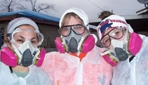 MIDDLEBURY, Vt. — Twelve Middlebury College students spent the week of Jan. 21-28 gutting flood-damaged houses with the Common Ground Collective, a grassroots relief effort creating islands of hope in New Orleans’ devastated communities. For three weeks prior to the trip, the students and a Middlebury staff member studied with Associate Professor of American Literature and Civilization Will Nash during the college’s month-long winter term. They examined the history, culture, politics, economics and environmental aspects of the stricken city. During the fourth week of the academic course, titled “Katrina and Its Aftermath,” the group traveled with Nash to get down to work. Up at dawn each day of their trip, the volunteers toiled together until dusk. They unloaded supply trucks at a relief distribution center and built its access driveway. They hauled debris and cut brush. Wearing full protective gear and breathing apparatus to ward off toxins, the crew shoveled muck out of four family homes in the city’s 9th