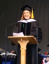 Dana Reeve, who was an English major at Middlebury, and her husband gave the commencement address at Middlebury in May 2004. “The courage and determination of Dana Morosini Reeve and her husband Christopher Reeve inspired our entire college community,” said Middlebury College President Ronald D. Liebowitz. “During Middlebury’s 2004 commencement ceremony, Dana told the graduating class, ‘Some choices will choose you. How you face these choices, these turns in the road, with what kind of attitude, more than the choices themselves, is what will define the context of your life.’ Dana will be long remembered for the energy, intelligence, and compassion with which she faced her choices, the turns in the road that confronted her. I’m pleased that Middlebury has initiated this new award to tangibly represent to our students her inspiring work.”