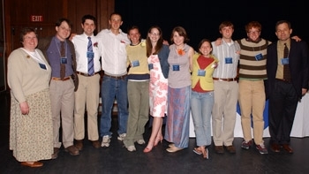 Receiving the Middlebury College Public Service Leadership Awards were: Nathan Blumenshine ‘08 of Minneapolis, who started the organization Hope for Peace on campus; William Scott Buckley ‘07 of South Charleston, W.V., who serves with the Middlebury Volunteer Ambulance Association, Salisbury Fire Department, and Open Door Clinic in Middlebury; Jamie K. Fuchs ‘07 of Lake George, N.Y., who worked as a volunteer at HIV/AIDs clinics, orphanages, and schools in South Africa; Lynn Gray ‘08 of Sturbridge, Mass., who is a campus leader in the Page One Literacy Program’s after-school reading and writing initiative; Jameson C. Henn ‘07 of Cambridge, Mass., for his work on campus, in Vermont and nationally to reduce carbon emissions and reverse global warming; and Jennifer Leigh Williams ‘08 from Rockford, Ill., who took time off from college to volunteer for eight-and-a-half months in New Orleans after Hurricane Katrina.