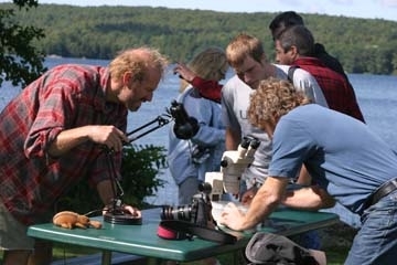 The news is good, according to Sheldon. Now two years since the native weevils were introduced into the pond, the milfoil is retreating. The weekend gathering - complete with microscopes and accommodating weevils - was hosted by Fairfield Pond Association President Bruce Collopy and his wife, Sally Ann, who organized the effort to introduce the beneficial insects into the pond.