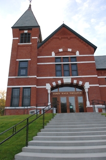 Town Hall Theater is a grass-roots organization of over 200 local residents who began work in 2000 to save and restore one of the area’s most historic buildings, which was built in 1883. Already completed are complicated and expensive measures to stabilize the structure, including a massive new slate roof; a painstaking restoration of the historic exterior; new front plaza; improved accessibility; and a garden on Pleasant Street. Interior renovations and the addition remain undone.