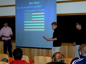 One classmate seems a bit dubious at the end of the presentation. “How are you going to do that?” he asks, prompting the team to review its capital raising plans. “I’m surprised that you did not mention public relations,” notes Voorhees. The questioning continues for a few minutes - polite, yet pressing - giving students a chance to defend their positions and think on their feet.