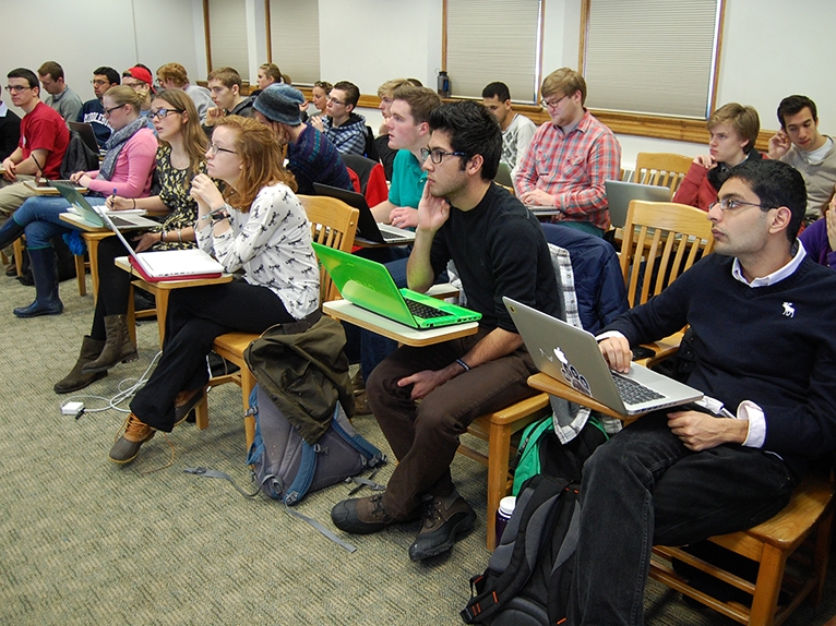 The fourth student, Cate Costley ’15, said she finds it distracting when students around her are using laptops in class. “The nearby-peers effect” – a term popularized by Clay Shirky at NYU – “is enough for me to feel like it’s time to shut the laptops.”