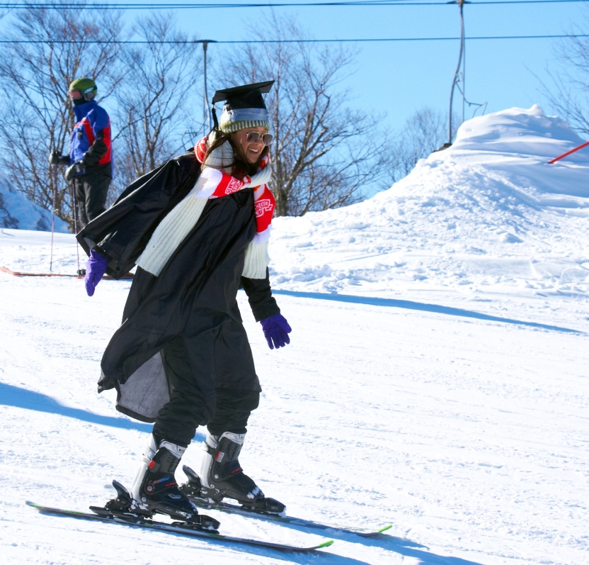 MIDDLEBURY, Vt. – A unique Middebury tradition – the annual “Feb Ski-Down” at the Middlebury College Snow Bowl – will take place this Saturday, February 6, when 114 mid-year graduates ski and snow board down the mountain in caps and gowns. The ski-down is part of a two-day February Celebration. Though not a formal graduation ceremony — “Febs” and their families are invited back to campus in May to participate in commencement — the event at the college-owned ski area is a beloved tradition.