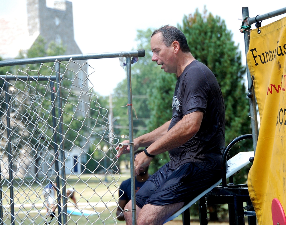 Much of the day’s attention was on the Dunk Tank, where some senior members of the administration took turns getting drenched while staff members laughed and cheered and raised money for a good cause.