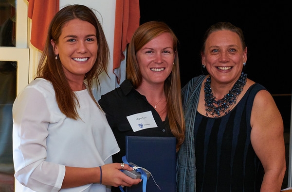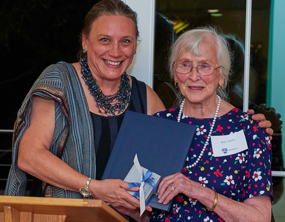 The presentations were made at a celebratory dinner for the current and past recipients of the award on October 5, 2016, at the president’s house at 3 South Street. Betty Nuovo was accompanied by her husband, Victor Nuovo, the Charles A. Dana Professor Emeritus of Philosophy. The award honoring the late David Sears was presented by President Patton to his wife, Susan, and daughters Megan and Alexandra.