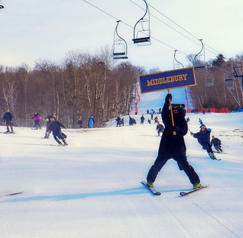 Following the ceremony at Mead Chapel, festivities will move up the mountain to the Middlebury Snow Bowl for the ski-down at 11:30 a.m. Non-skiers will also join the fun, either hiking or snowshoeing down the mountain with their classmates.