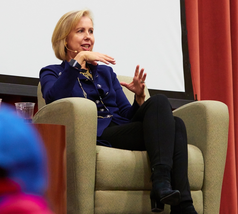 Asked about her advice for college students leaving school and entering the working world, Gibbs recommended that students set out to talk to as many people as possible about their careers and how they spend their days. Be open to changing direction and living in uncertainty, she said, urging students to devote themselves to finding their way in the world in the same way they’d devoted themselves to their studies.