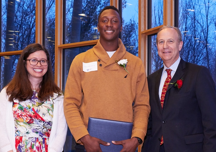 - The John M. McCardell Jr. Public Service Leadership Award was presented by Bonnie McCardell to Dan Adamek ’18 for his service to John Graham Housing and Services in Vergennes. As a member of the board of directors and finance committee, Adamek helped raise $40,000 through the organization’s annual sleep-outside fundraiser.