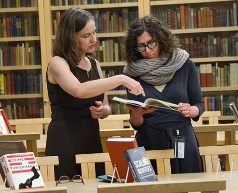 Associate Professor Marybeth Nevins (left) spoke with Rebekah L. Irwin, the director and curator of Special Collections and Archives.
