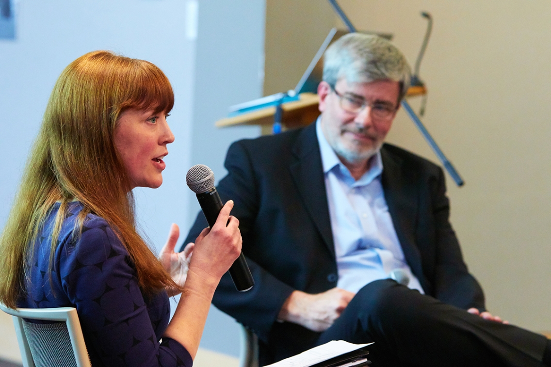 Myers, who teaches courses on empirical methods, urban economics, and the economics of discrimination, among others, asked Sander to reflect on whether the current campus climate’s chilling effect on research on such controversial topics could be a good thing. She asked, “Does the empirical analysis of race itself perpetuate racism?”