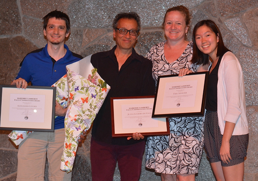 Two runners-up for the 2018 Lamberti Award were also recognized: Assistant Professor Tara Affolter of the Education Studies Program and Assistant Professor Alexander Lyford of the Mathematics Department.