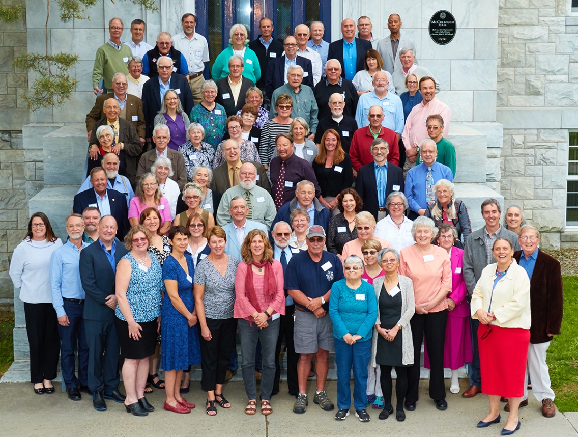 Members of Middlebury’s 25-Year Club gathered for the annual reception and photo at McCullough Student Center on June 5. Photo: Todd Balfour