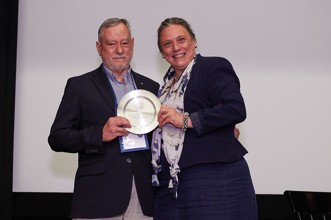 The Alumni Plaque award, which is presented annually in recognition of service to the College, was presented to Michael Heaney ’64, earlier in the day, and to Mary MacArthur Wendell ’69 during Convocation.