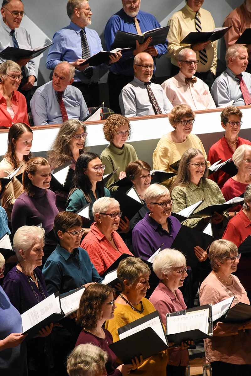 MIDDLEBURY, Vt. – The Middlebury College Community Chorus presents its annual Thanksgiving performances on the Middlebury College campus at the Mahaney Arts Center’s Robison Concert Hall at 7:00pm on Saturday evening, November 23 and again at 3:00 pm on Sunday afternoon, November 24. Historic and contemporary music fills the free, hour-long program entitled “Songs of Rejoicing and Remembrance.” Jeff Rehbach conducts and Tim Guiles accompanies the 110 community and student members of the choir—among the largest choirs in the state!