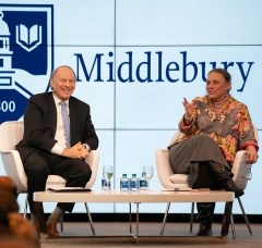 Patton and CFR President Richard Haass interviewed each other in front of a crowd of Middlebury alumni, parents, and friends in New York.