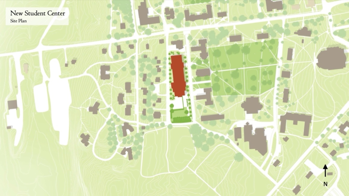 The new student center—now in the preliminary design phase—will be located on the current site of Proctor Dining Hall and the adjacent tennis courts.