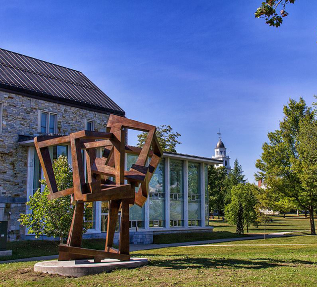 The 14-foot high “Chaos Xaxis,” by American artist Jedd Novatt, is the newest addition to Middlebury’s growing public art collection.
