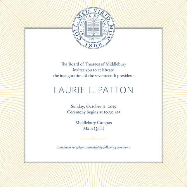 Middlebury will celebrate the inauguration of Laurie L. Patton with a festive weekend of music, academic inquiry, and tradition.
