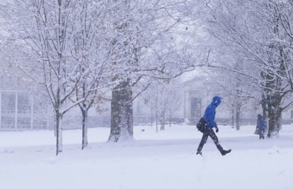 The 1955 recording made at the Bread Loaf Writers’ Conference is paired with current footage from an early snowfall on the Middlebury campus.