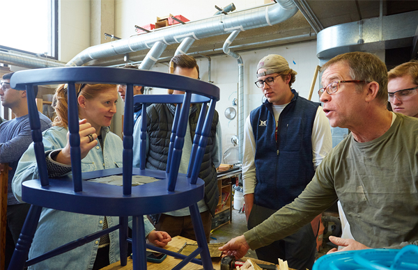 In the spirit of a time capsule, students in a winter term course integrated modern artifacts into a classic Windsor chair, following a design created by Henry Sheldon in 1884.