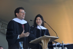 At a ceremony on May 6, President Ron Liebowitz announced to members of the Middlebury community that the main library, unnamed since its completion in 2004, would now be called the Davis Family Library, in honor of Jim Davis β66; his wife, Anne; their son, Chris β08; and their daughter, Kassia.